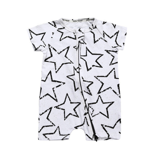 Spring Autumn Baby Romper Short Sleeve Jumpsuit Infant Toddler Kids Star Print Rompers Newborn Baby Girls Boys Clothes White