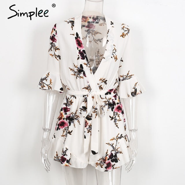Brand Name: SIMPLEEMaterial: PolyesterType: PlaysuitsStyle: CasualFit Type: RegularPattern Type: PrintDecoration: SashesModel Number: JU344Fabric Type: ChiffonItem Type: Jumpsuits & RompersGender: Women